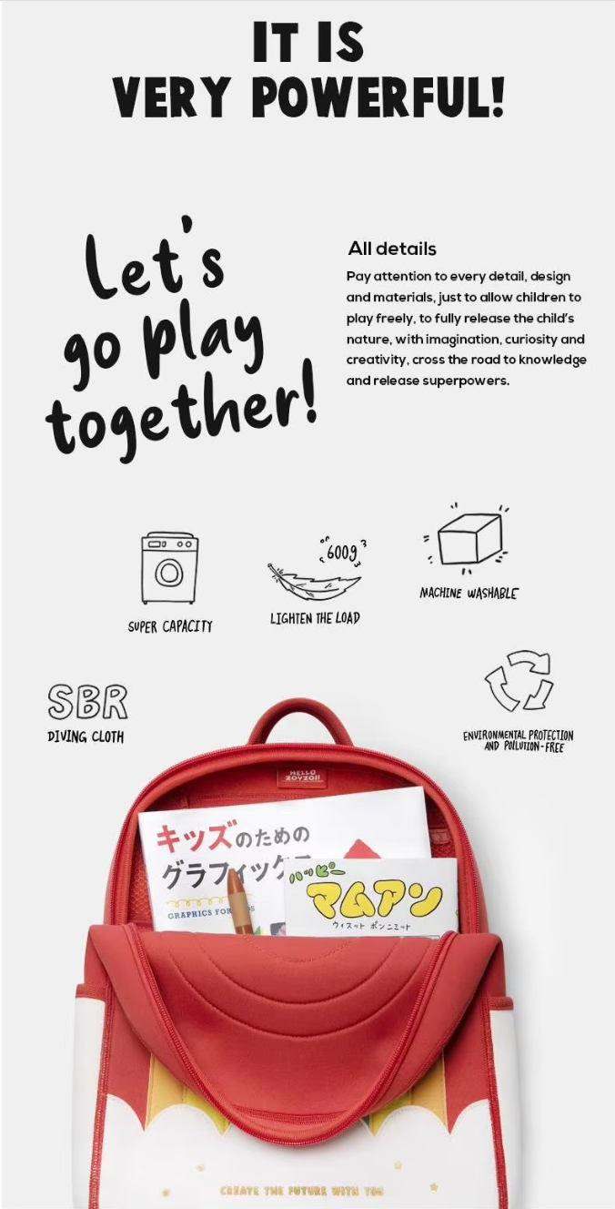- Το παιδικό σακίδιο πλάτης είναι κατασκευασμένο από υψηλής ποιότητας SBR Diving Cloth που το καθιστα αδιάβροχο.