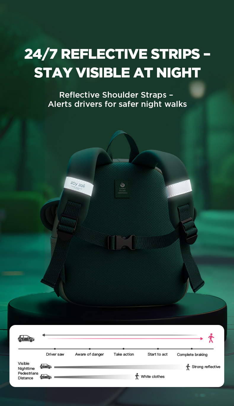 - Η νυχτερινή ανακλαστική ταινία στη μέση του μάρσιππου κάνει το παιδί ασφαλέστερο ακόμα και όταν βγαίνει έξω τη νύχτα.