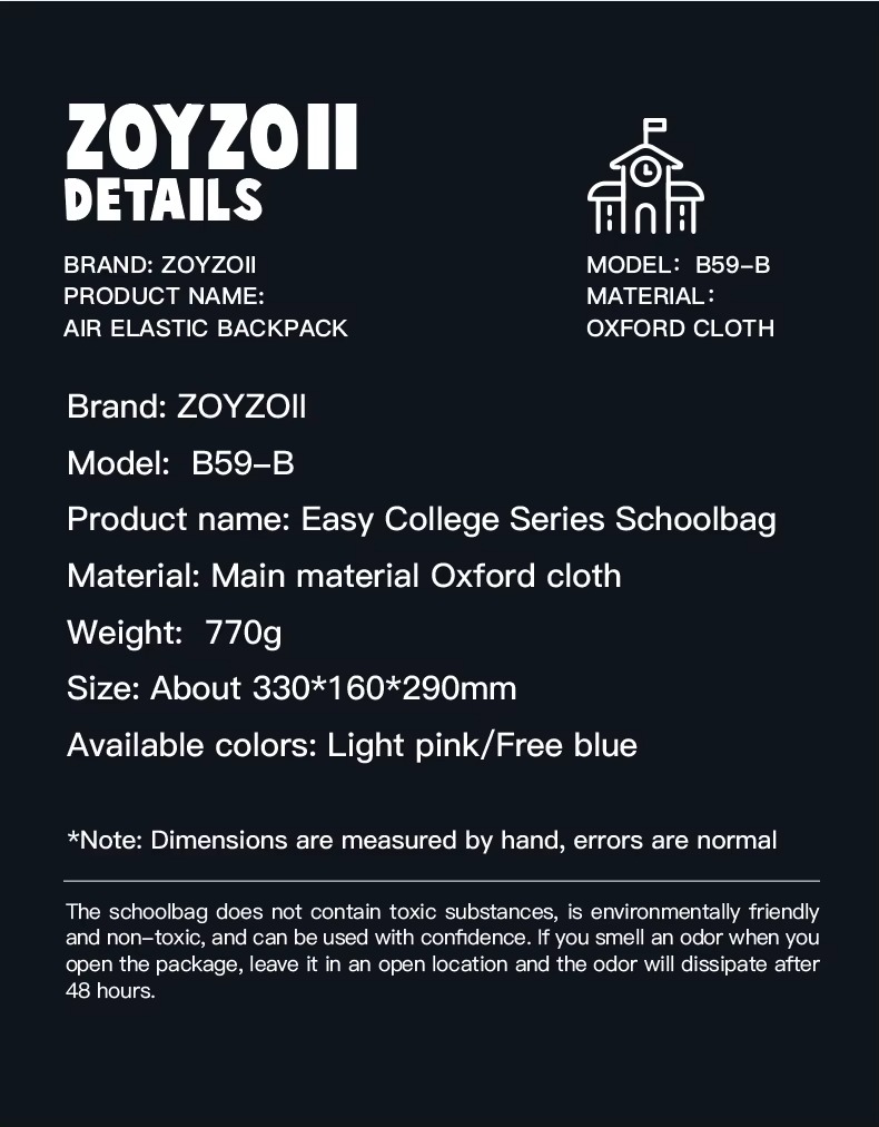 Το σακιδίο πλάτης Zoyzoii® B59-B είναι ένα σχολικό εντυπωσιακό, και ελαφρύ σακίδιο με πολλούς χώρους αποθήκευσης. Σύγχρονο, όμορφο, αδιάβροχο, πολυτελές με πολλές τεχνολογίες καινοτομίας. Είναι επίσης αρκετά ανθεκτικό διότι κατασκευάζεται από υψηλής ποιότητας Oxford Cloth. Το παιδί θα ταξιδέψει μαζί του σε κάθε σχολική του δραστηριότητα και ταξιδιωτική του περιπέτεια.